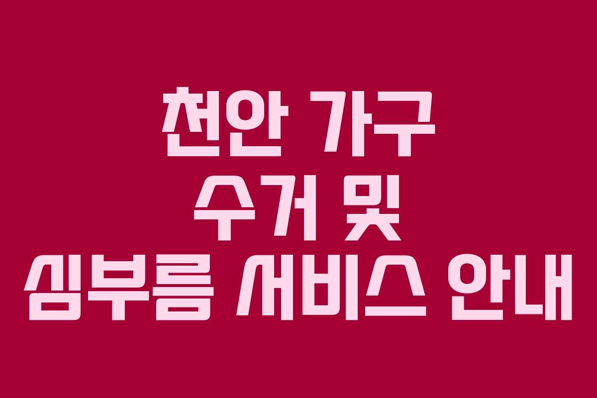 천안은 다양한 가구 수거 서비스와 심부름 센터가 있어 주민들에게 편리한 생활을 제공합니다. 이 글에서는 천안에서 제공하는 가구 수거 업체와 심부름 서비스에 대해 자세히 알아보겠습니다.