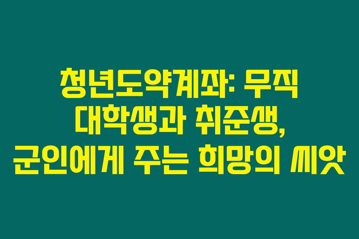 청년도약계좌는 무직 상태에 있는 대학생, 대학원생, 취업 준비생, 군인에게 경제적 자립과 미래를 준비할 수 있는 기회를 제공합니다. 이 계좌는 단순한 저축 수단이 아니라, 청년들이 꿈을 이루기 위한 필수적인 도구로 자리잡고 있답니다. 많은 청년들이 청년도약계좌를 통해 더 나은 미래를 향해 나아가길 바랍니다.
