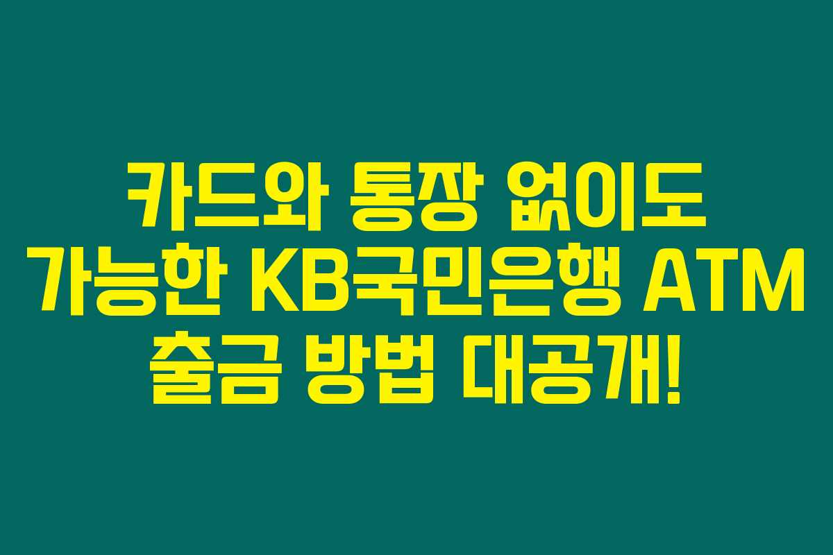 현대인의 생활에서 현금이 필요한 순간은 의외로 많이 발생하죠. 카드나 통장이 없으면 당황스럽고 불편할 때가 많은데요. 하지만 KB국민은행의 무카드 ATM 출금 서비스를 이용하면 스마트폰 하나로 간편하게 현금을 인출할 수 있습니다. 아래를 읽어보시면, 이 편리한 서비스를 어떻게 활용할 수 있는지 알아볼 수 있을 거에요.