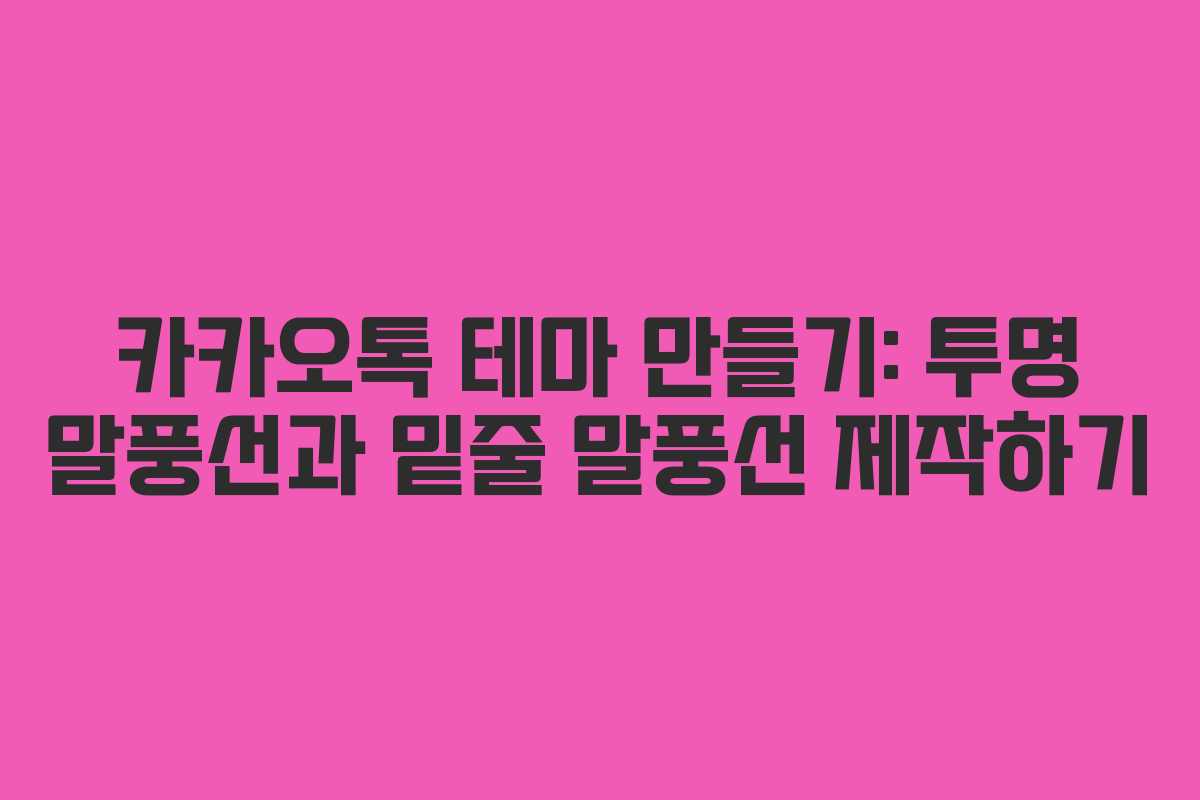 카카오톡 테마를 만드는 과정에서 투명 말풍선과 밑줄 말풍선을 만드는 방법에 대해 알아보겠습니다. 이 글에서는 필요한 설정과 절차를 자세히 설명하겠습니다.