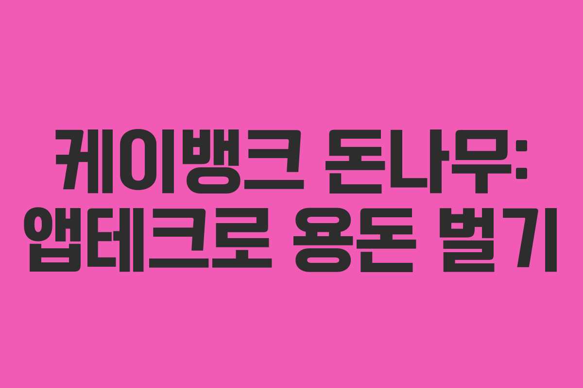 케이뱅크 돈나무: 앱테크로 용돈 벌기