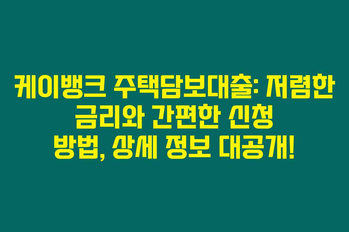 케이뱅크 주택담보대출: 저렴한 금리와 간편한 신청 방법, 상세 정보 대공개!