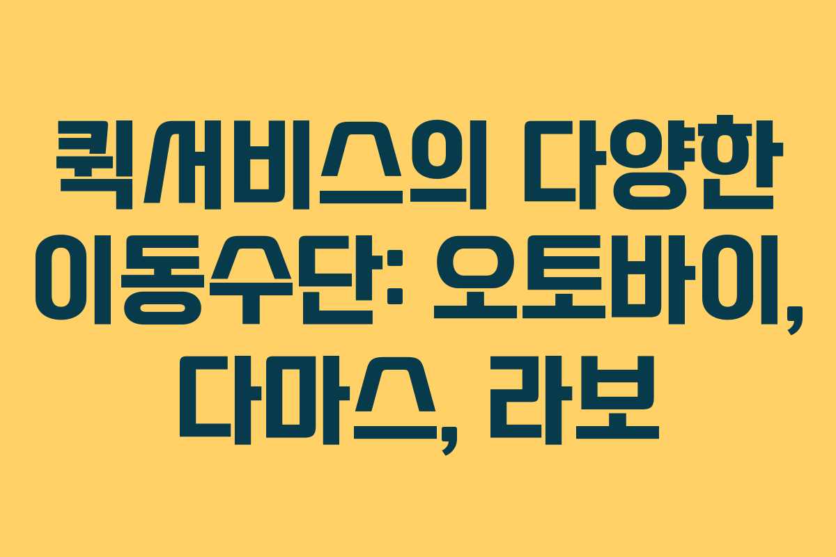 퀵서비스는 빠르고 효율적인 배송을 제공하는 서비스로, 여러 이동수단을 활용하여 고객의 요구를 충족시킵니다. 이 글에서는 퀵서비스에서 주로 사용되는 오토바이, 다마스, 라보의 특징과 장단점을 살펴보겠습니다.