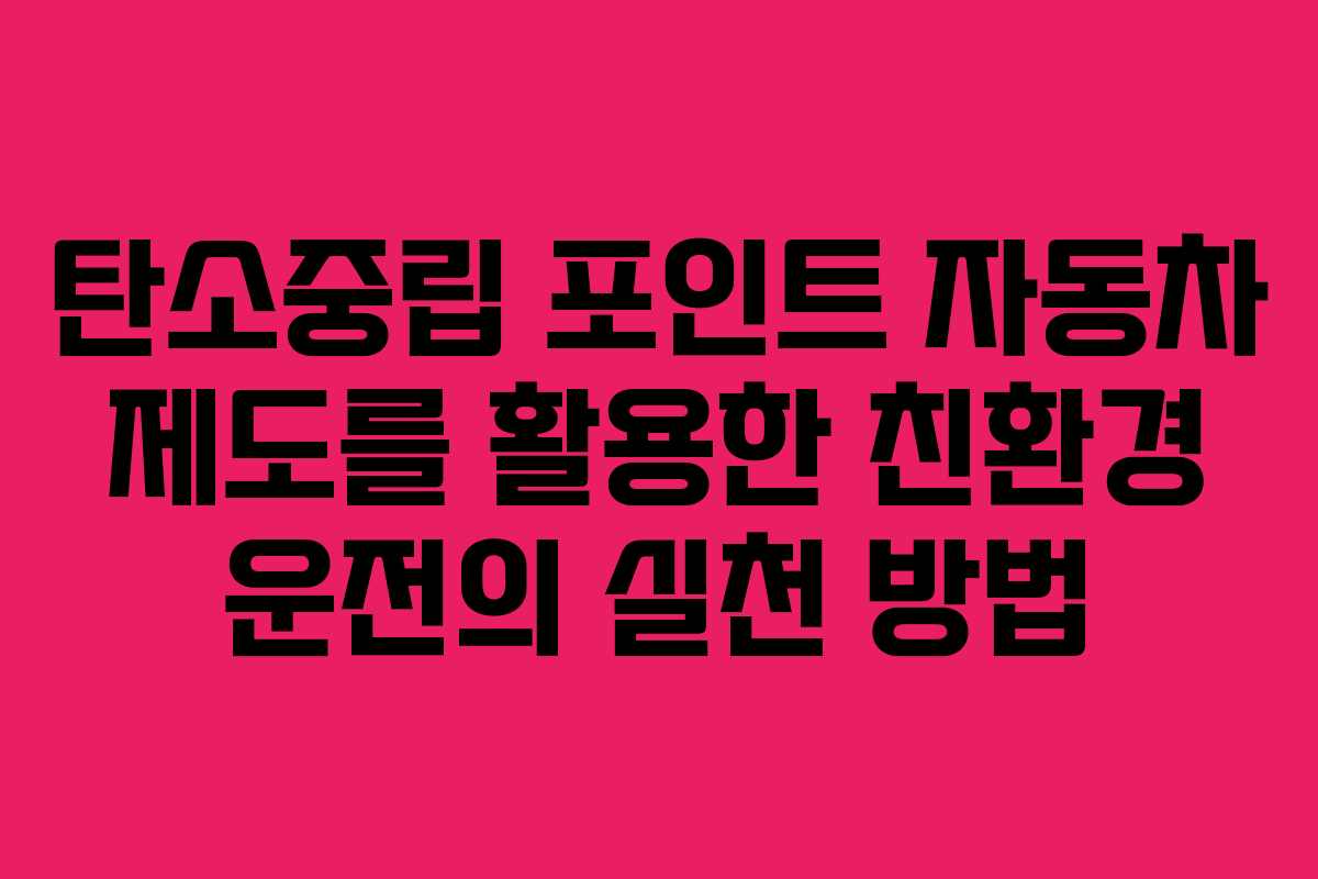 탄소중립 포인트 자동차 제도는 정부가 주관하여 개인 및 법인이 소유한 차량의 운전 습관을 개선하고 환경 보호에 기여할 수 있는 기회를 제공합니다. 이 제도는 온실가스 감축을 위한 인센티브 제공을 통해 운전자가 친환경 운전 습관을 형성하도록 유도합니다. 2026년 기준으로 이 제도는 특히 중요한 역할을 할 것입니다.