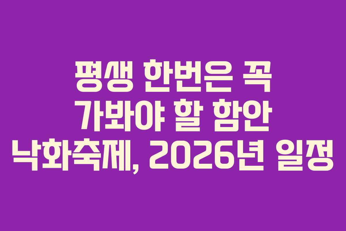 함안 낙화축제는 무진정 연못 위로 떨어지는 불빛과 주변 풍경, 잔잔한 분위기가 어우러져 특별한 경험을 제공합니다. 2026년에는 5월 24일에 하루 동안 열리며, 전원 사전 예약제로 운영됩니다. 예약 경쟁이 치열하지만, 미리 일정을 알고 준비하면 성공적으로 관람할 수 있습니다. 각자의 일정과 취향에 맞는 함안 낙화축제 여행 계획을 세워보시기 바랍니다.