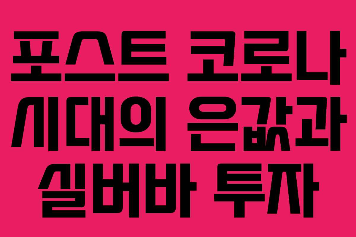 코로나19는 전 세계 경제에 큰 영향을 미쳤으며, 그 여파는 아직도 지속되고 있습니다. 이러한 시기에서 은값과 실물 투자로서의 실버바에 대한 관심이 높아지고 있습니다. 본 글에서는 현재 은값을 살펴보고, 실버바 투자의 장점과 주의사항에 대해 알아보겠습니다.