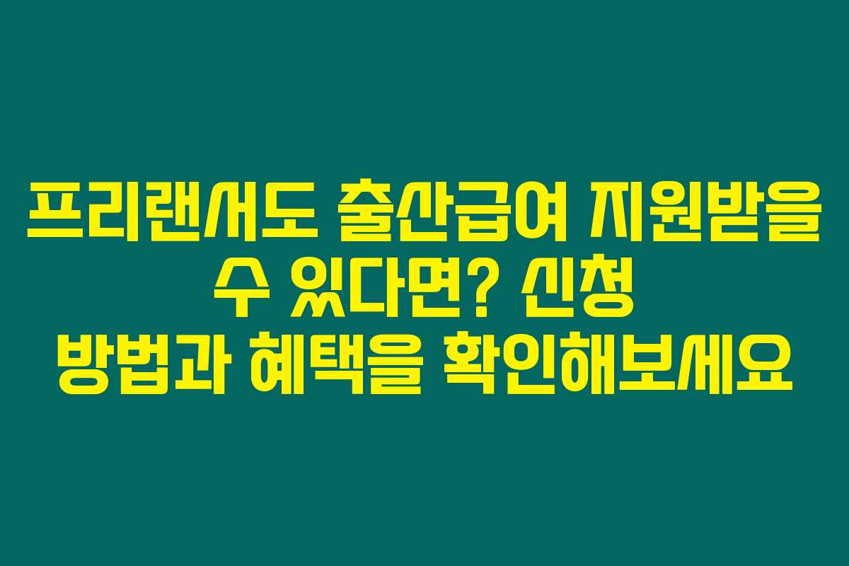 프리랜서도 출산급여를 받을 수 있다는 점 알고 계셨나요? 고용보험에 가입되어 있지 않은 프리랜서도 출산급여를 신청할 수 있는 방법이 있으니, 자신의 자격 요건을 반드시 확인해보세요.