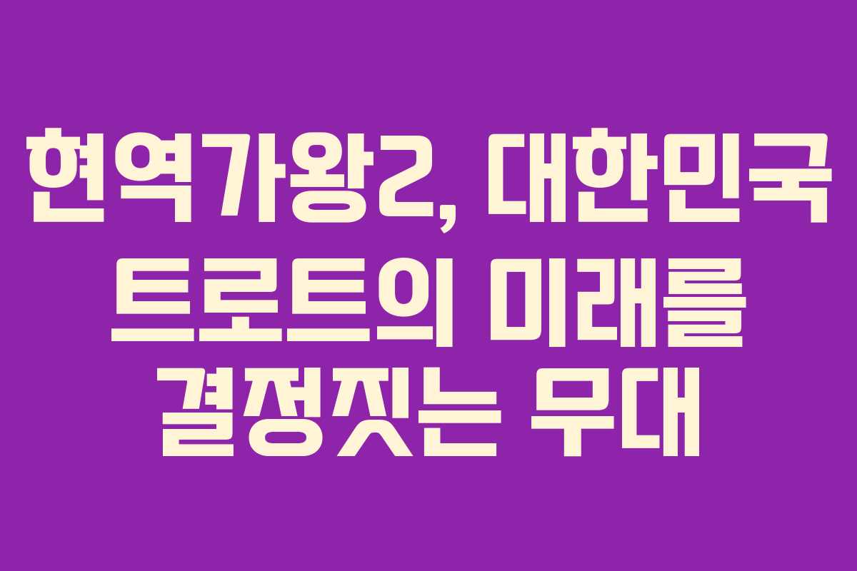 현역가왕2는 단순한 오락 프로그램을 넘어, 가수들의 진정성과 열정을 담아내는 치열한 도전의 무대입니다. 대국민 투표는 그들의 노력에 대한 응원이며, 꿈을 향한 길을 열어주는 중요한 역할을 합니다. 여러분의 많은 참여와 응원을 부탁드립니다.