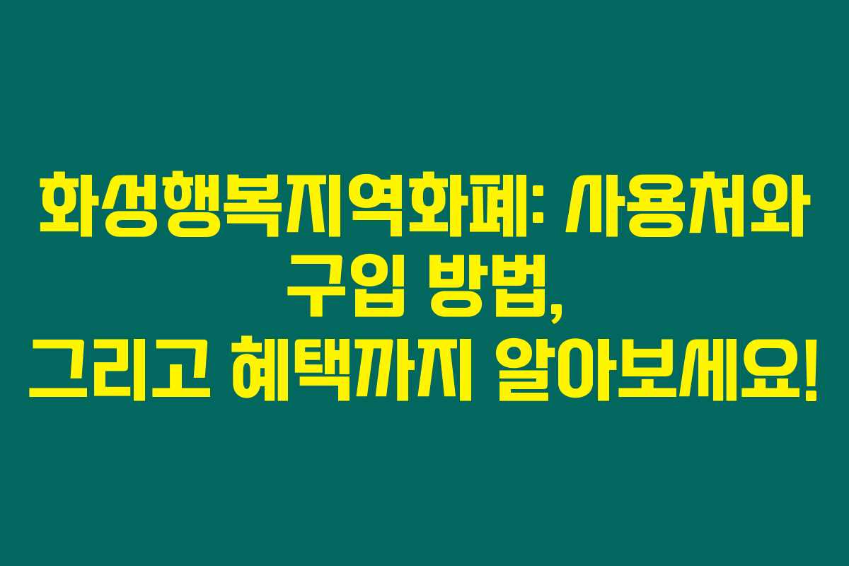 행복화성지역화폐는 지역 경제를 지원하고, 시민들에게 다양한 혜택을 제공하는 유용한 도구로 자리잡고 있어요. 이러한 지역화폐를 통해 화성시가 더욱 활기찬 곳으로 발전하길 바라요.