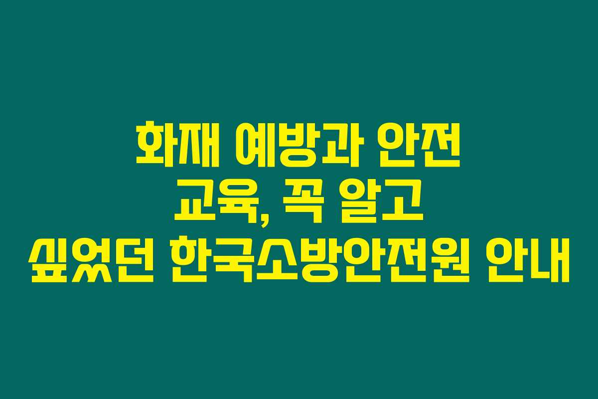 화재 예방과 안전 교육, 꼭 알고 싶었던 한국소방안전원 안내