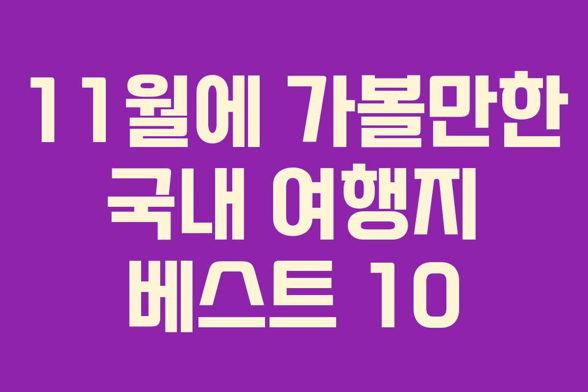 11월은 가을의 끝자락과 겨울의 시작을 알리는 시기로, 국내 여행을 즐기기에 적합한 계절입니다. 이 시기에 방문하면 아름다운 자연 풍경과 함께 정취를 만끽할 수 있는 국내 여행지 10곳을 소개합니다.