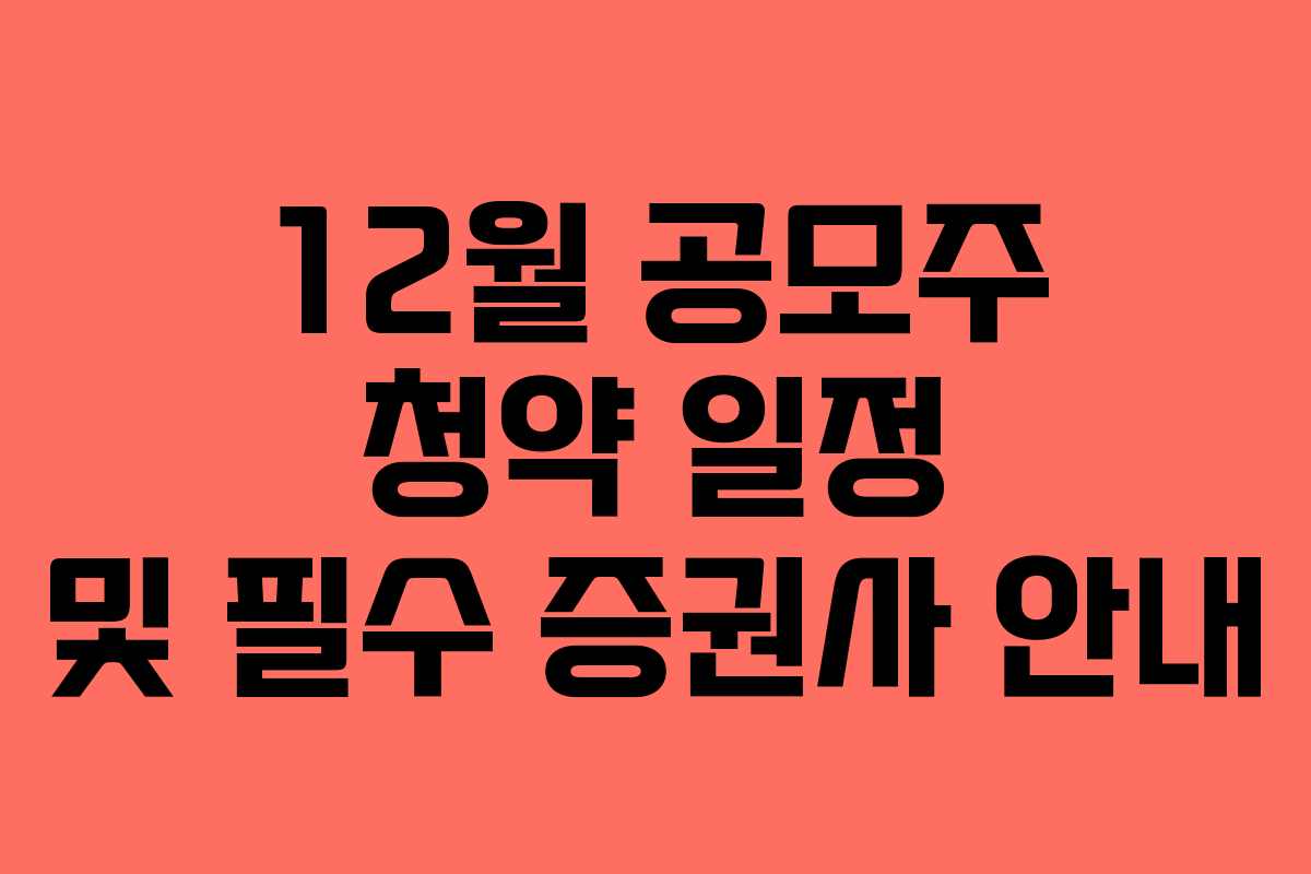 연말이 다가오면서 공모주 청약에 대한 관심이 높아지고 있습니다. 특히 12월에는 다양한 종목의 청약이 진행되어 투자자들에게 좋은 기회가 될 것입니다. 이번 글에서는 12월의 청약 일정과 함께 반드시 필요한 증권사에 대해 알아보겠습니다.