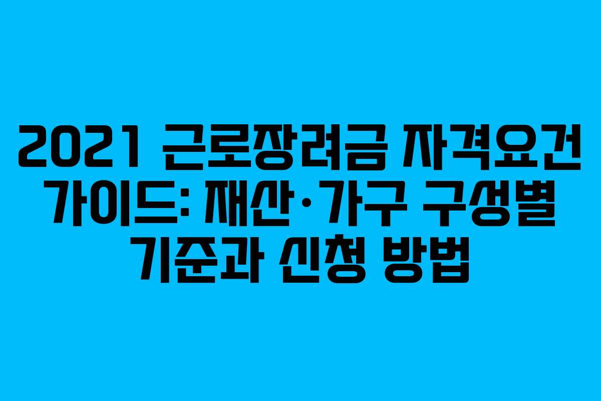 아래를 읽어보시면 2021년 근로장려금의 재산·가구 구성별 자격 요건과 신청 절차를 한눈에 확인할 수 있습니다. 가구 유형에 따른 차이와 주의사항, 자주 묻는 질문까지 포함해 정리했습니다.