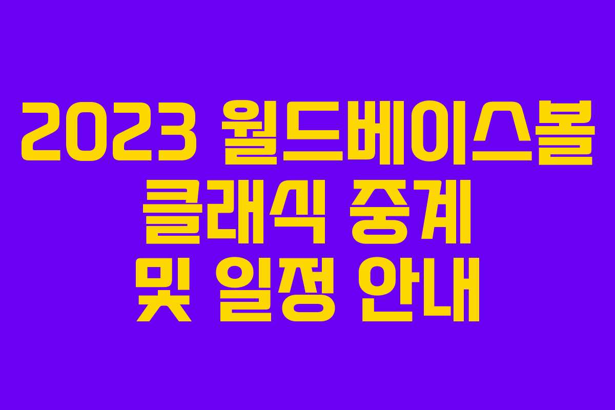 2023 월드베이스볼 클래식(WBC)은 KBC, MBC, SBS 등 지상파 3사에서 중계됩니다. 이번 대회에서는 4개의 그룹으로 나누어 리그전을 진행하며, 각 그룹 상위 2개 팀이 토너먼트 방식으로 8강에 진출합니다. 독자들은 다양한 방송사의 중계를 통해 좋아하는 팀과 선수의 경기를 시청할 수 있는 기회를 얻습니다.