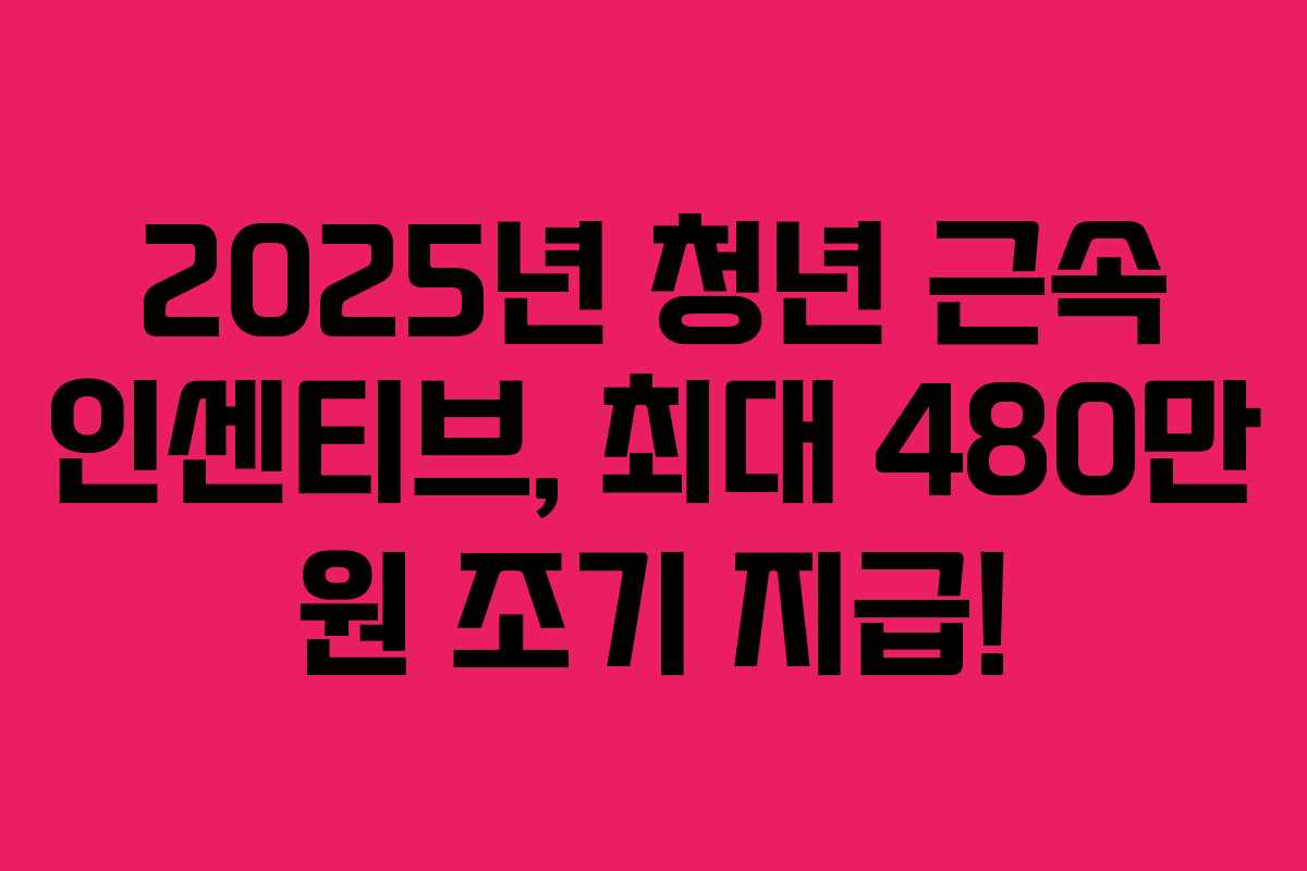 2025년부터 청년 근속 인센티브가 조기 지급됩니다. 최대 480만 원의 지원금을 더 빨리 받을 수 있는 기회가 마련되어 많은 청년들에게 희소식이 될 것입니다.