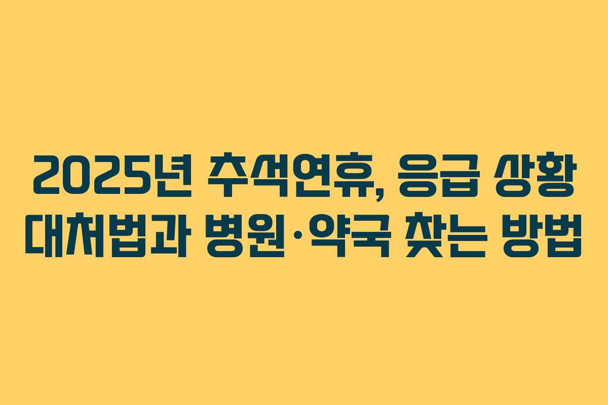 2025년 추석 연휴는 가족과 함께하는 소중한 시간입니다. 그러나 갑작스러운 응급 상황이 발생할 경우, 어떻게 대처해야 할지 미리 알아두는 것이 중요합니다. 이번 글에서는 추석 연휴 동안 문 여는 병원과 약국을 찾는 방법 및 응급실 이용 시 알아두어야 할 팁을 소개합니다.