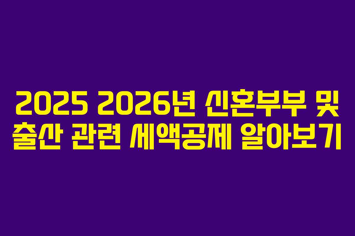 2025 2026년 신혼부부 및 출산 관련 세액공제 알아보기