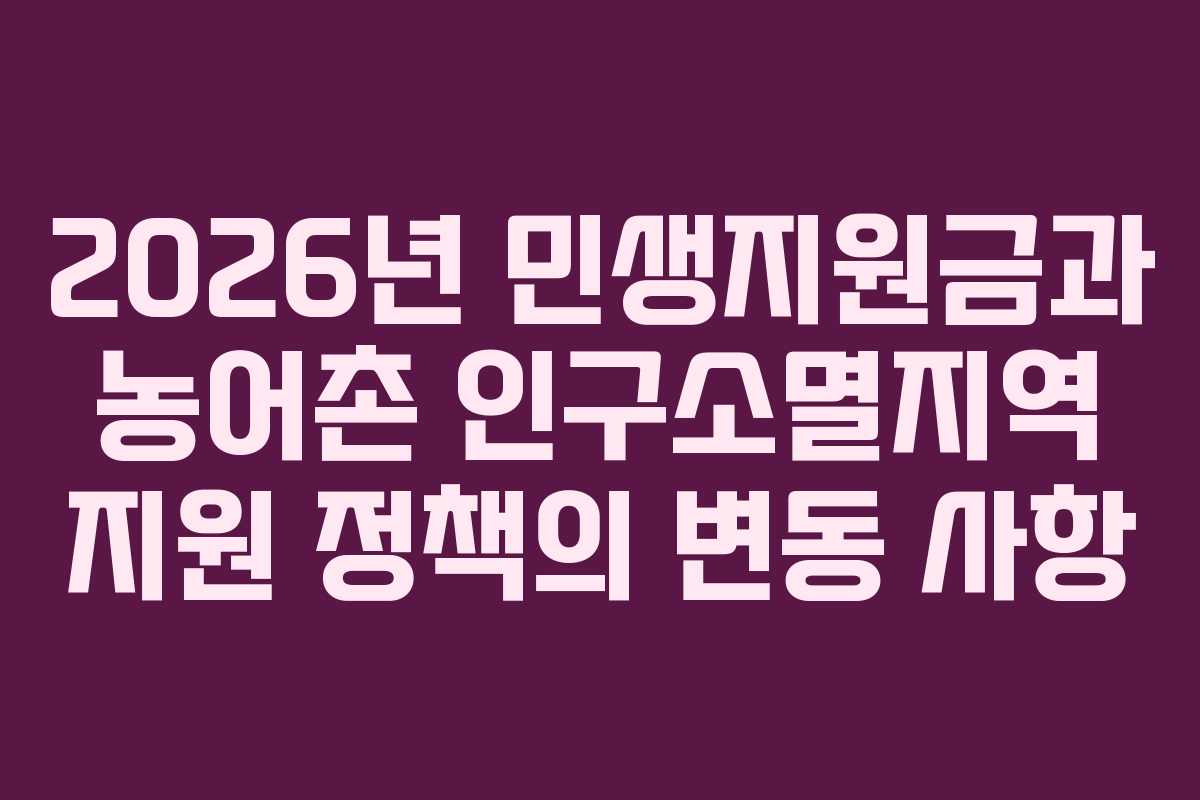 2026년 민생지원금과 농어촌 인구소멸지역 지원 정책의 변동 사항