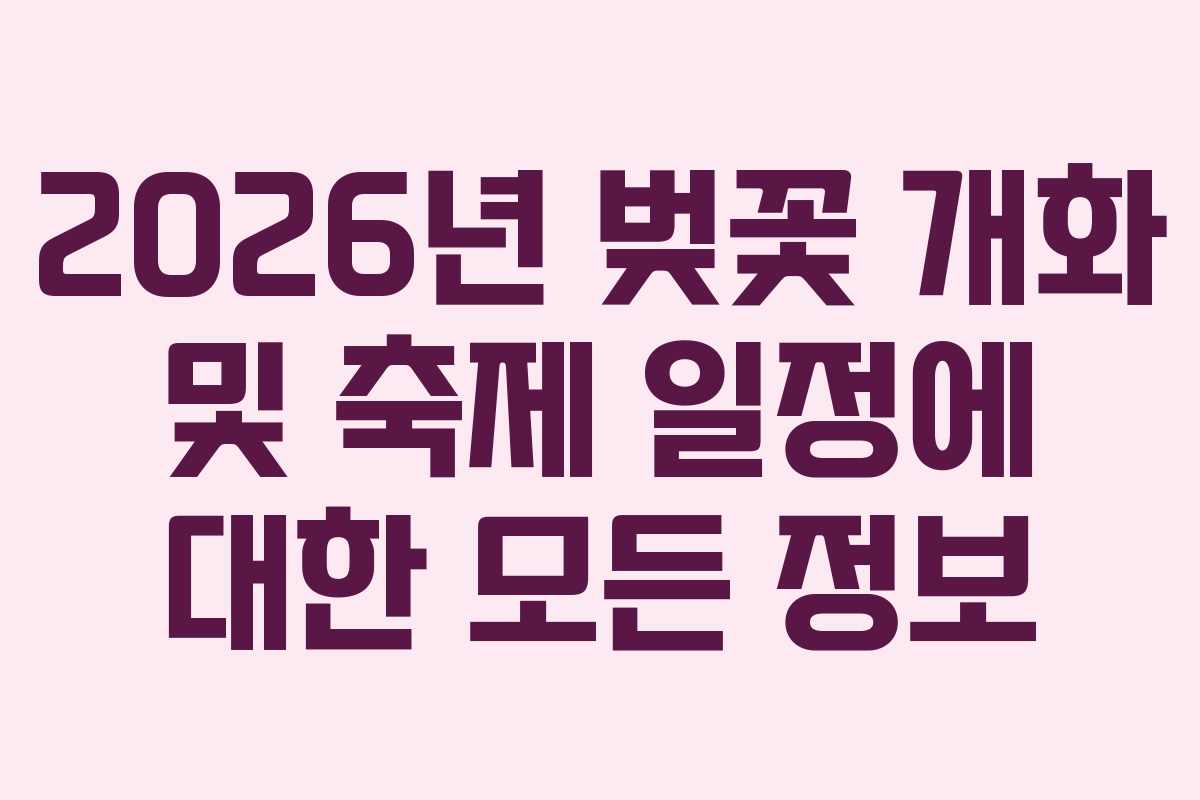 2026년 벚꽃 시즌에 맞춰 다양한 축제들이 개최된다. 각 지역별로 진행되는 축제 일정은 해마다 다소 차이가 있지만, 올해는 벚꽃 개화 시기와 축제 일정이 맞물려 좀 더 많은 행사가 준비되고 있다. 아래에 소개하는 축제들은 벚꽃을 만끽할 수 있는 좋은 기회가 될 것이다.