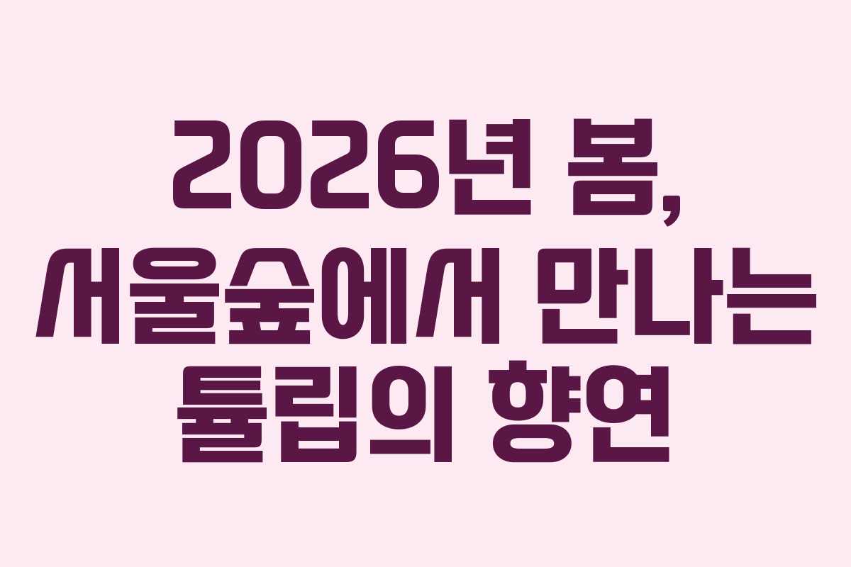 2026년 서울숲 튤립 축제는 4월 첫 주말에 맞춰 열리며, 튤립의 만개 시기를 고려하여 방문하는 것이 좋습니다. 정확한 일정은 서울숲 공식 웹사이트를 참고하면 유용합니다.