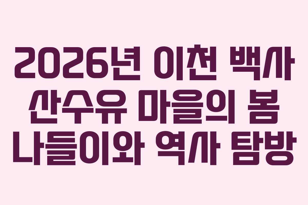 마지막으로, 이천 백사 산수유 마을은 봄의 시작을 알리는 장소로서, 자연의 아름다움을 만끽하고 역사적 의미를 되새길 수 있는 기회를 제공합니다. 2026년 봄, 이곳에서 특별한 순간들을 경험해 보시길 바랍니다.