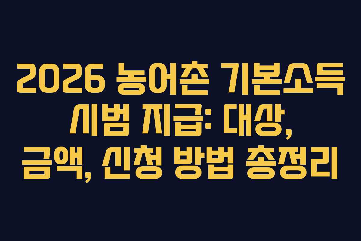2026 농어촌 기본소득이 확대되면 어떤 변화가 있을까요?