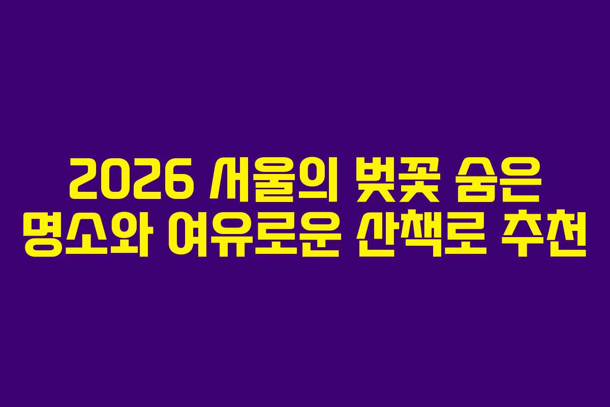 서울의 봄은 벚꽃이 만개하는 아름다운 계절로, 많은 이들이 봄바람을 맞으며 꽃구경을 기대하는 시점입니다. 특히 2026년에는 3월 20일부터 24일 사이에 벚꽃이 개화할 것으로 보이며, 이에 따라 한적한 벚꽃길을 찾는 이들에게 유용한 정보를 제공하고자 합니다. 여의도 윤중로와 같은 북적거림을 피하고, 조용하게 벚꽃을 감상할 수 있는 숨은 스팟을 소개하겠습니다.