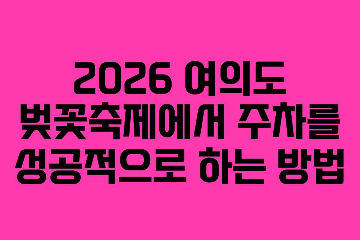 2026년 여의도 벚꽃축제가 다가오고 있으며, 많은 사람들이 이 시기를 기다리고 있습니다. 아름다운 벚꽃과 함께 즐길 수 있는 다양한 행사들이 준비되어 있어 많은 인파가 몰릴 것으로 예상됩니다. 하지만 이러한 인기 있는 축제에는 주차 문제라는 큰 고민이 따릅니다. 주차 공간 확보에 대한 팁과 함께, 2026년 최신 정보로 안전하고 편리하게 여의도 벚꽃축제를 즐길 수 있는 방법을 안내하겠습니다.