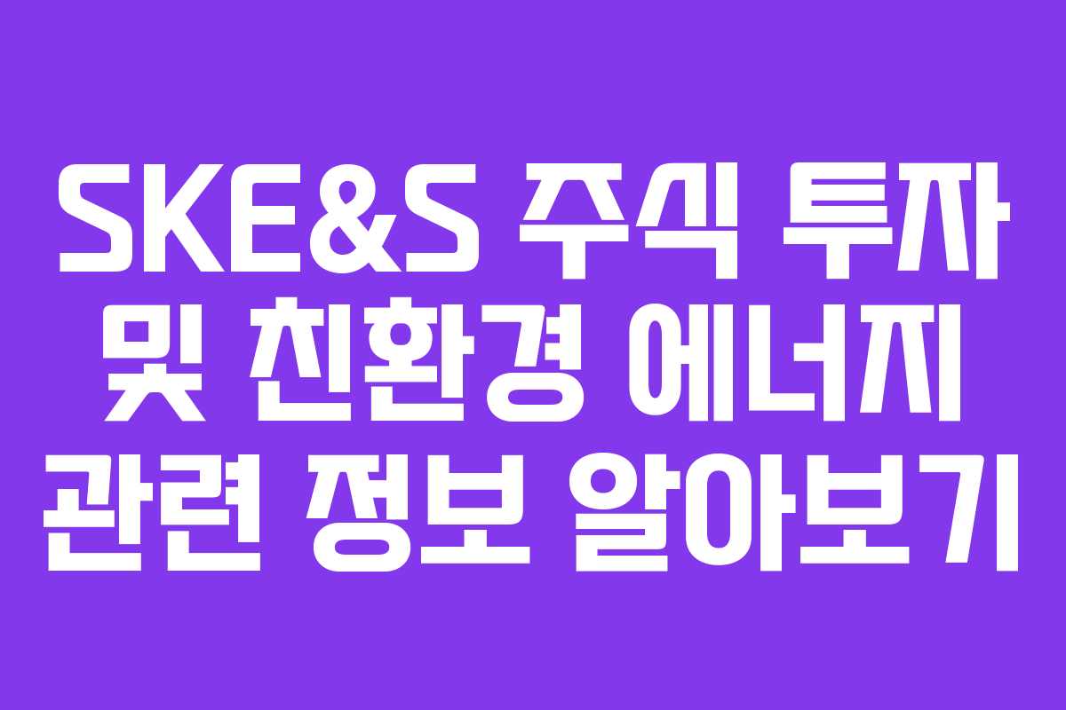 SKE&S에 대한 정보와 투자 관련 사항을 잘 이해하는 것은 향후 투자 결정을 내리는 데 큰 도움이 될 것입니다.